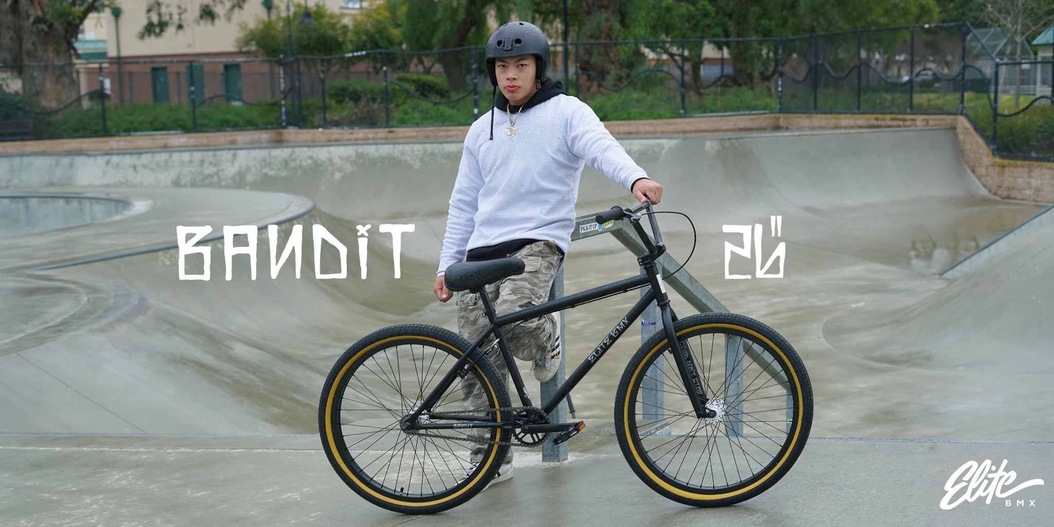 The Outlaw 26" BMX by Elite BMX is designed for riders who crave a versatile and powerful bike with a larger frame for cruising, freestyle tricks, or any type of adventures. Built with a durable high-tensile steel frame and equipped with sturdy cranks, the Outlaw ensures strength.